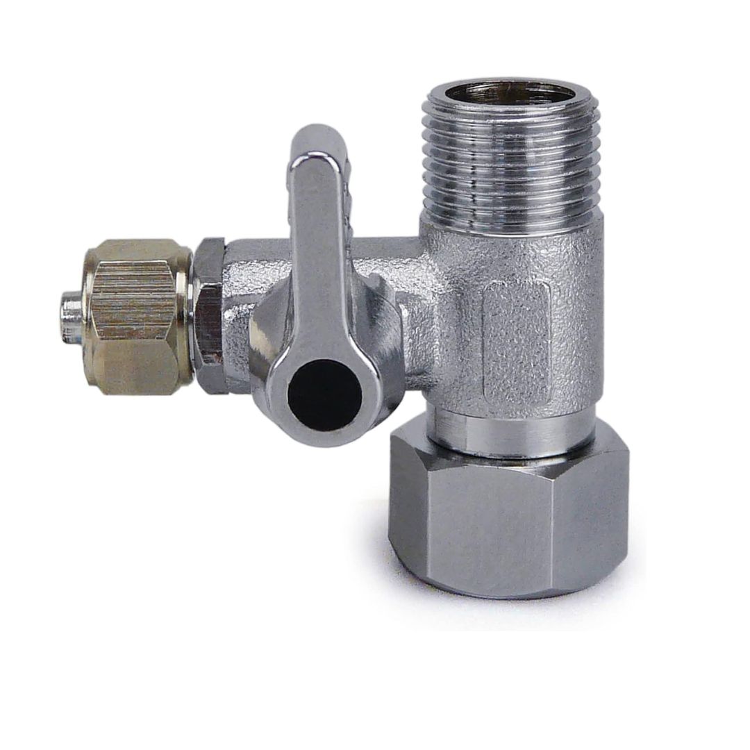 - Toma la válvula «T» de 3/8″ y conéctala directamente a la llave de paso de agua fría.